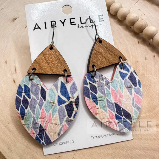 Abstract Mermaid Triangle Cork + Leather Wood Earrings