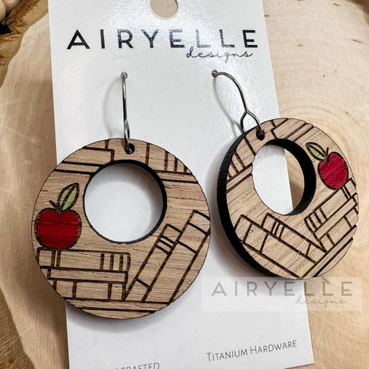 Teacher Apple White Oak Hoop Earrings