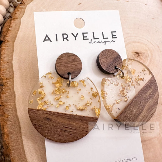 Round Eclipse Gold Flake Acrylic Resin + Wood Earrings